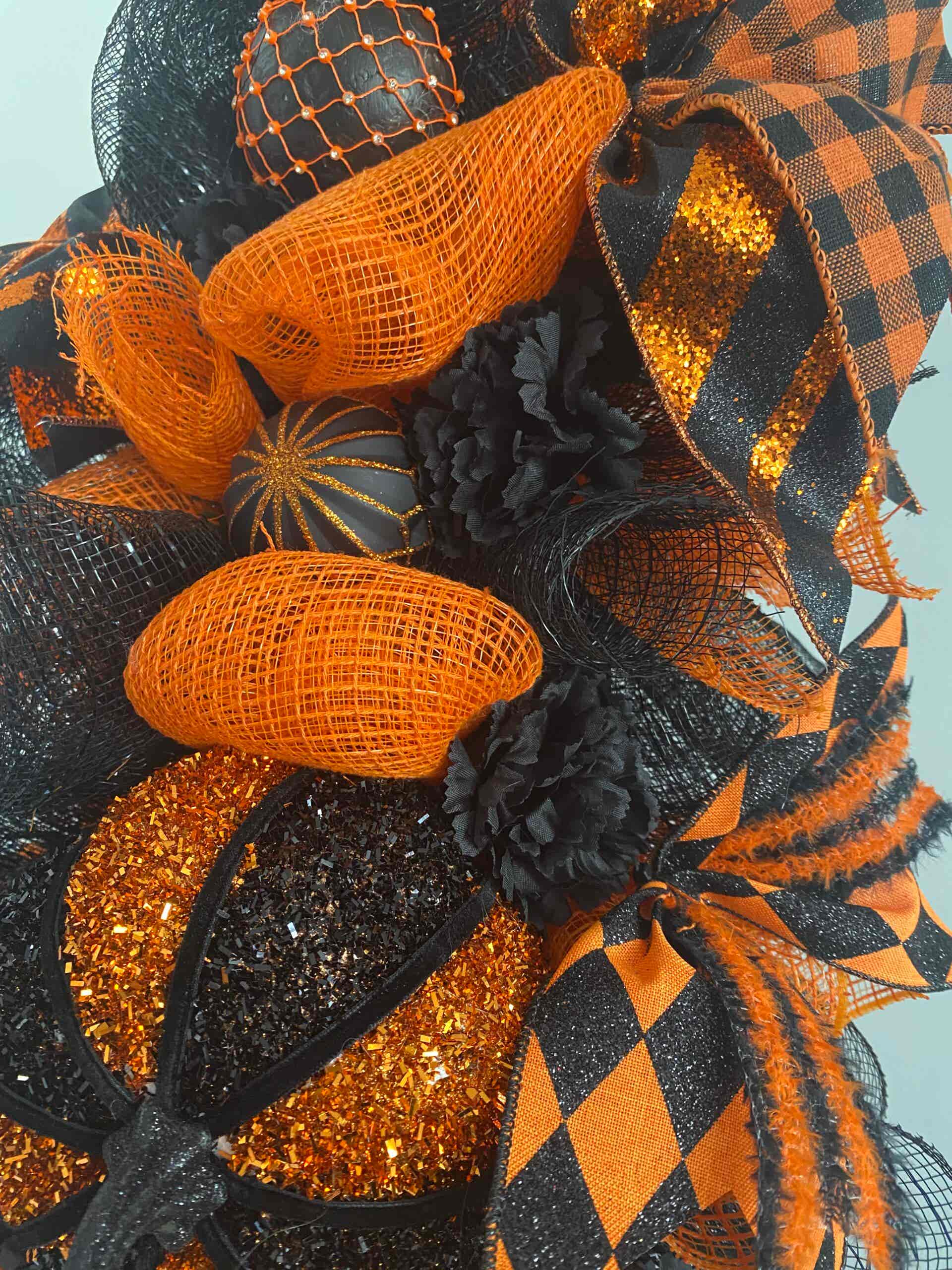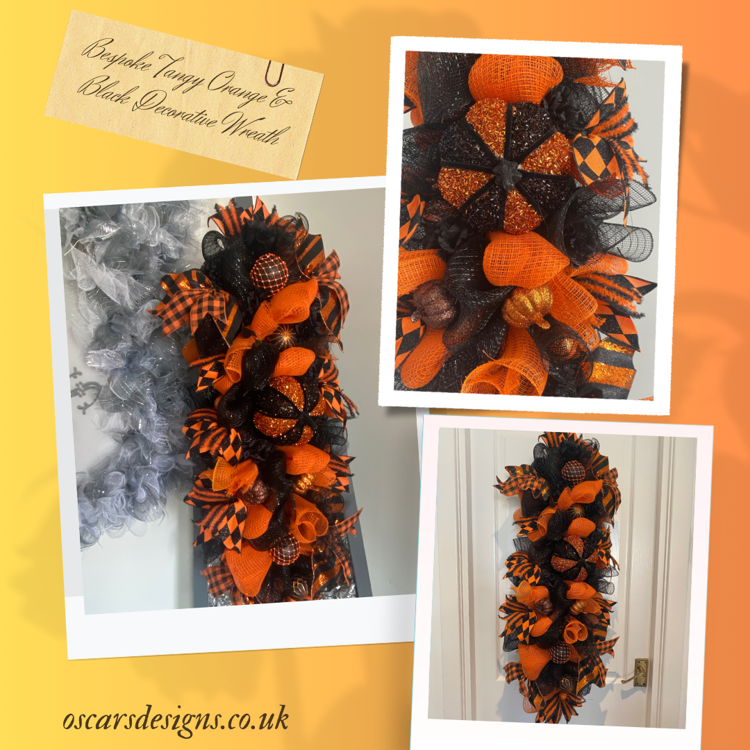 Bespoke Tangy Orange & Black Decorative Wreath
